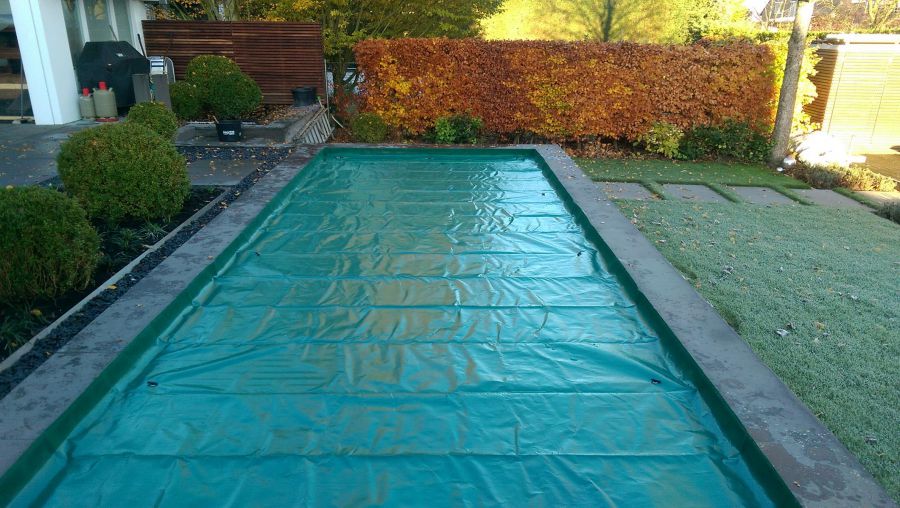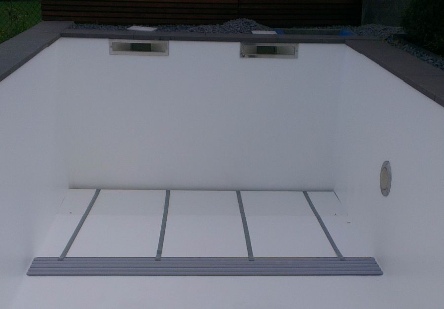 Die Rollladenabdeckung ist im Beckenboden installiert. Es ist kein angesetzter Rollladenschacht notwendig.