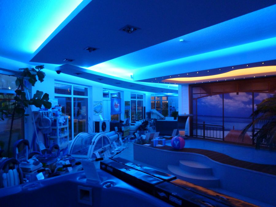 - mit Trockenbau, abgehängter Decke, LED-Beleuchtung