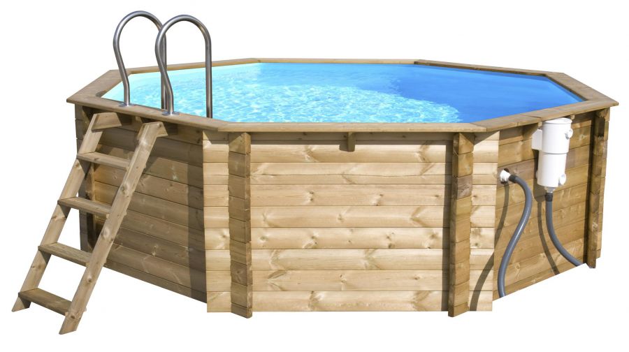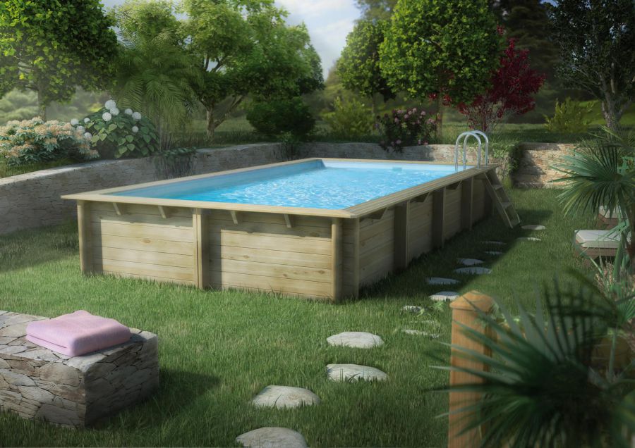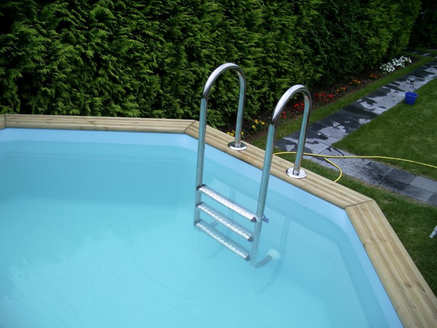 Wir bieten hochwertige Selbstbaubecken aus Holz an, mit eingehängter Folie und komplettem Zubehör-Bausatz.