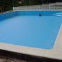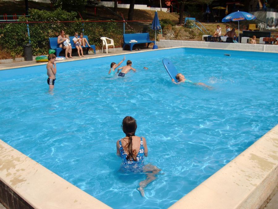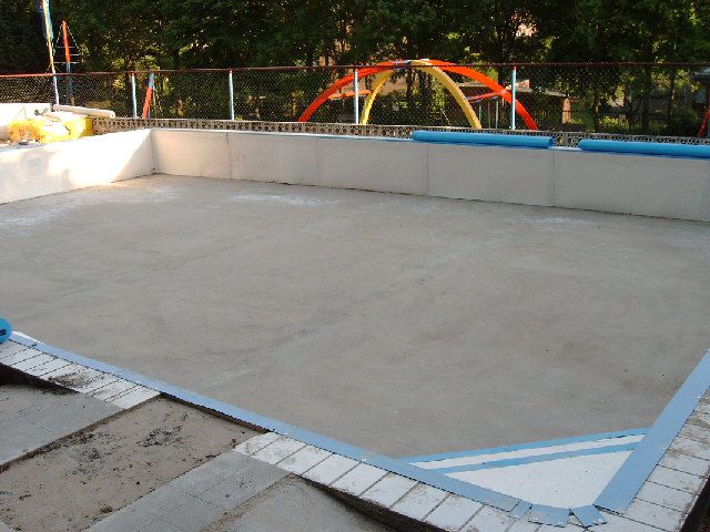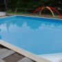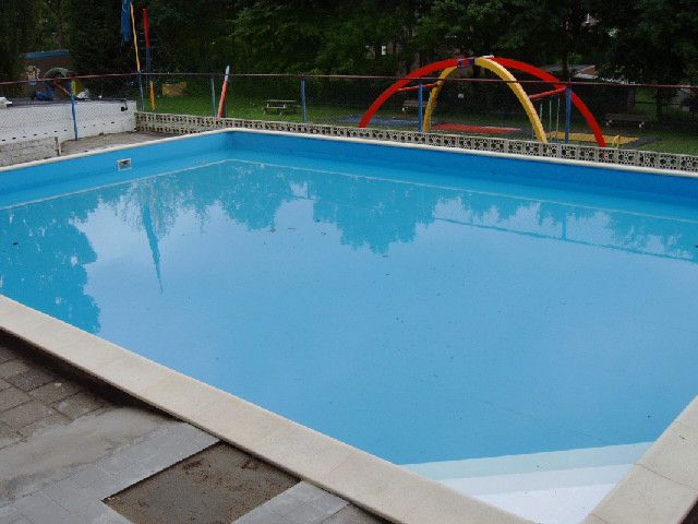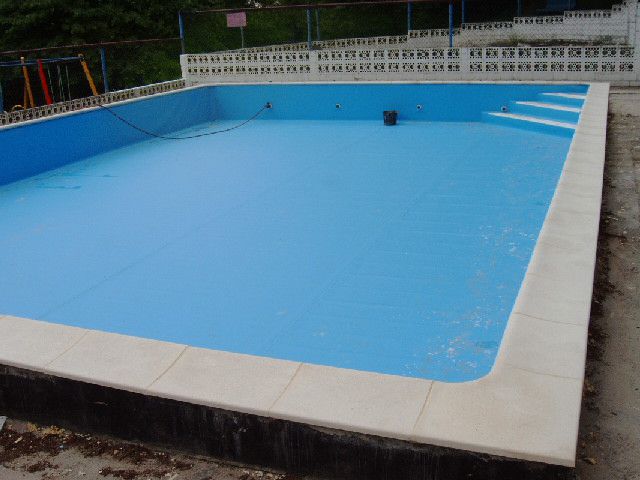 Die Komplettsanierung wurde von uns vorgenommen: Neben dem Hauptschwimmbad, das wir mit einer hellblauen Folie auskleideten, erstellten wir ein völlig neues Kleinkinderbecken.