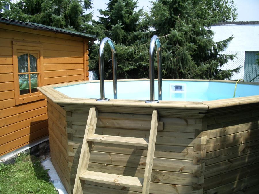 Schwimmbecken mit edelstahlfarbener Folienauskleidung in Würselen