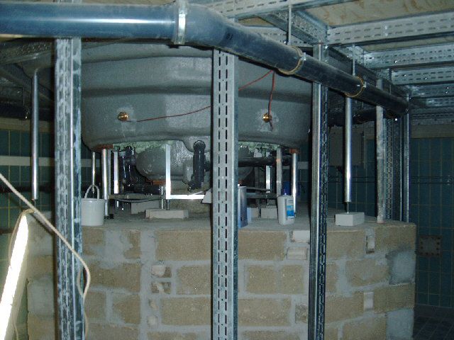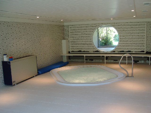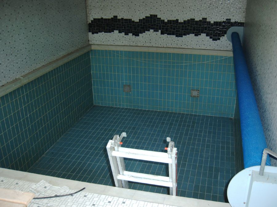 Hier sehen Sie den Bauablauf einer Umgestaltung eines alten Hallenschwimmbades in einen Wellnessbereich mit großem Whirlpool in Köln: